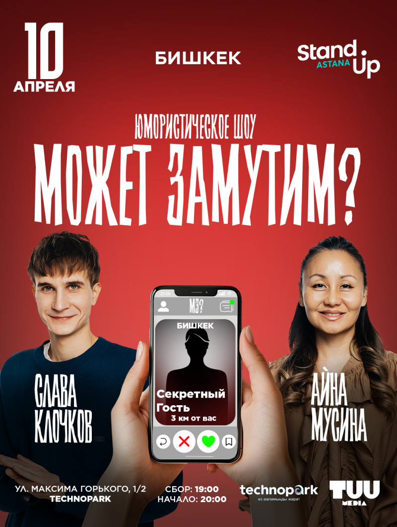 10 апреля — юмористическое шоу вместе со Славой Клочковым и Айной Мусиной 🔥
